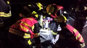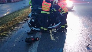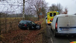 Tři osoby cestovaly v osobním autě, které havarovalo okolo půl šesté u Křižanova. Zdravotníci ošetřovali celkem dvě zraněné osoby, milevští profesionální hasiči pomohli jedné z nich z auta do sanitky. Zároveň provedli u auta protipožární opatření a kontrolu úniku provozních látek.