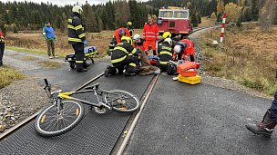 Rozsáhlý požár lesního porostu v prostředí Národního parku Šumava a srážka drážního vozidla se skupinkou německy mluvících cykloturistů – to byl námět taktického cvičení…