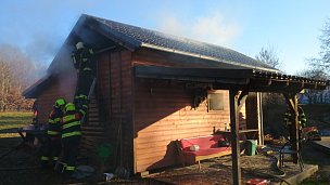 Po 14. hodině vyjeli hasiči z českobudějovické stanice a hasiči Správy železnic k požáru zahradní chaty v Českých Budějovicích. Požár zasáhl vrchní a podstřešní část objektu. Jednotky musely objekt odpojit od elektřiny a provádí rozebírání stěn pro finální likvidaci.