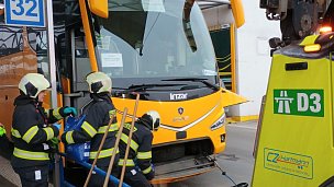 Na autobusovém nádraží na střeše OC Mercury v Českých Budějovicích zasahovali hasiči u autobusu, kterému prasklo řízení. Vytekl z něj motorový olej. Olejové skvrny hasiči zasypali sorbentem a uklidili. Nepojízdný autobus byl odtažen.