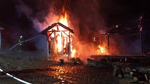 Několik jednotek hasičů zasahovalo u požáru dřevníku v Nových Hradech. Hasičům se podařilo ochránit vedlejší objekt.