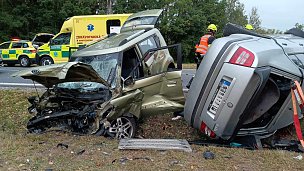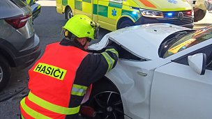 Vážnou nehodu řešily složky IZS u Lásenice. Po střetu dvou osobních aut profesionální jednotka z J. Hradce vyprošťovala 3 z celkem 6 cestujících. Následky srážky jedna osoba nepřežila. Po vyproštění a zajištění aut hasiči pomáhli s transportem do sanitky a vrtulníku.