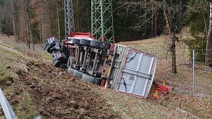Na dálnici D3 ve směru na Kaplici se převrátil kamion